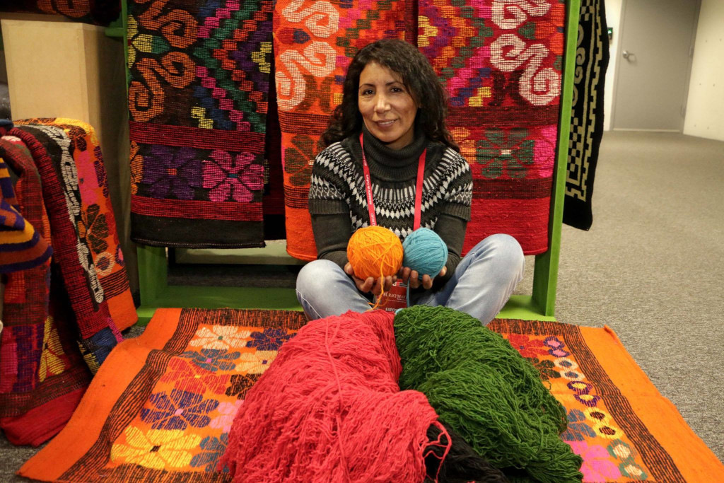San Pedro de Cajas, pueblo de agricultores, pastores y tejedores, se caracteriza por la confección de una frazada llamada caiserina, que se distingue por ser tejida en telar a pedal con lana de oveja de colores contrastantes y por llevar diseños geométricos y de flores. Uno de los grandes tejedores y promotores de la textilería de sanpedrana fue don Santiago Paucar Amaru, reconocido como Gran Maestro de la Artesanía Peruana en 1993. Elvia es hija de don Santiago y de doña Jovita Orihuela, de su padre aprendió el arte del telar a pedal, y de su madre el manejo de tintes naturales. Elvia conserva las técnicas y los diseños de la tradición local para la producción de piezas textiles pero también trabaja la técnica moderna del relleno para producir tapices con escenas figurativas. En los últimos años, el trabajo del taller de doña Elvia destaca por sus múltiples colaboraciones con renombrados artistas internacionales.